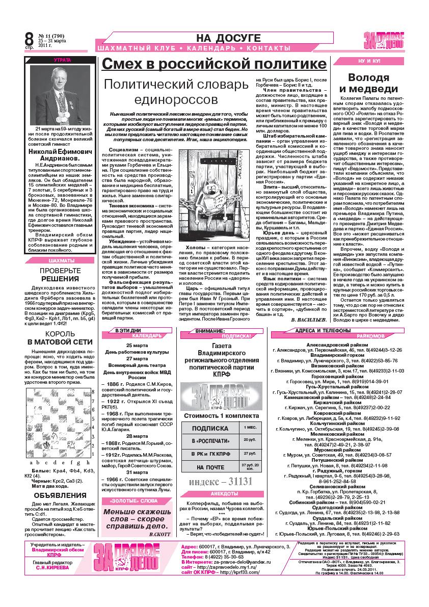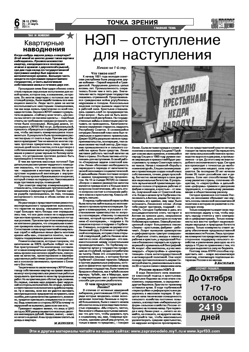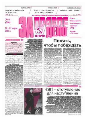 Вышел из печати новый, 11-й в этом году, номер газеты Владимирского обкома КПРФ «За правое дело».