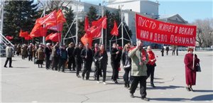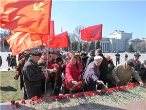 В этот солнечный день на площади Революции собрались секретари обкома, горкома и районных комитетов КПРФ, коммунисты, сторонники партии, все, кому дорога историческая память народа, неотъемлемой частью которой является создатель Советского государства.