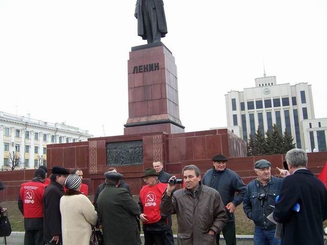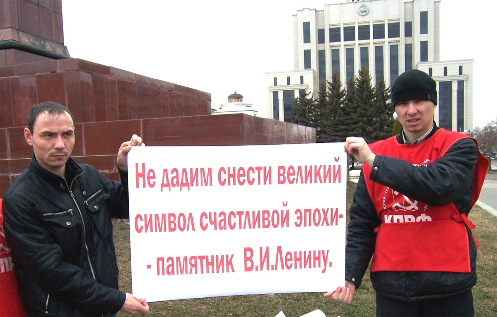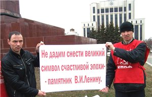 После возложения цветов перед зданием Казанской ратуши было организовано пикетирование, цель которого - привлечь внимание общественности к участившимся провокационным слухам о возможном сносе монумента В.И. Ленину на площади Свободы в связи со строительством многоуровневой подземной парковки.