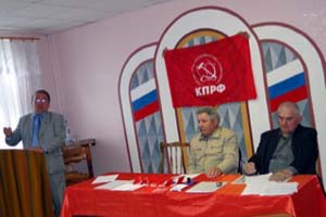 Перейдя к анализу работы райкома, В.М. Севостьянов отметил, что за отчетный период в ряды КПРФ принято 3 человека, а из жизни ушло гораздо больше. Некоторым вновь принятым пришлось приостановить членство в партии в связи с тем, что они нашли работу. В “Единой России” этого делать не нужно, а если состоишь в КПРФ, то надо думать, что с работой придется распроститься. Поставленный перед райкомом партии план по ежегодному увеличению приема на 10% от численного состава в Хомутовском РК выполняется. Однако при падающей демографической ситуации этого явно мало. И на отчетном собрании коммунисты района приняли обязательство: увеличивать прием в КПРФ на 20% ежегодно.