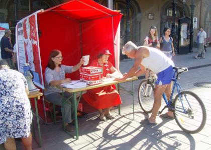Коммунисты Заводского района живо откликнулись на инициативу граждан из других регионов России о создании Народного ополчения для объединения всех подлинно патриотических сил и организованной защиты честных результатов предстоящих выборов в Государственную Думу. Запись в него производится прямо во время проведения Народного референдума.