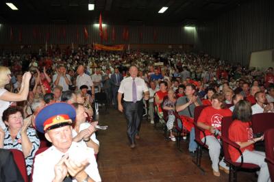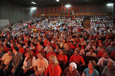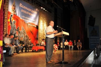 В самом концертном зале над сценой вывешен большой транспарант «Всенародное ополчение. За отчий край! За землю русскую!». Рядом транспарант с надписью «Главная привилегия коммунистов – первым подниматься в атаку и трудиться до седьмого пота». На форуме выступил Председатель ЦК КПРФ Г.А. Зюганов. Выступили представители различных социальных групп: от рабочих, казаков, предпринимателей, военных, научных работников, руководителей предприятий, молодежи и др. – все выступления были очень яркими и эмоциональными. Участники форума скандировали лозунги «Зюганова – в Президенты!», «Водрузим красное знамя над Кремлем!» и были настроены решительно.