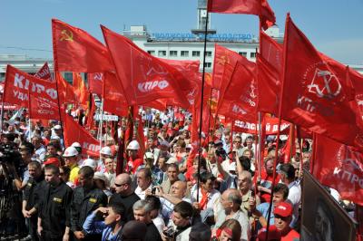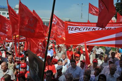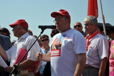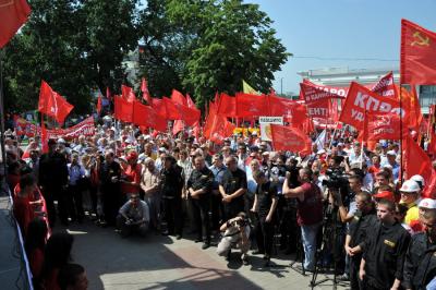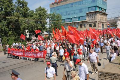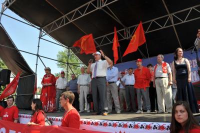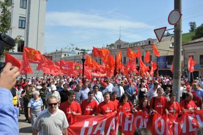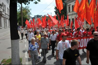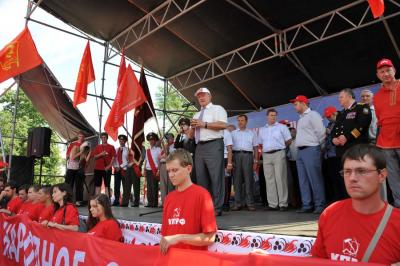 В намеченное время многотысячная колонна организованно двинулась по намеченному маршруту. Впереди колонны шел духовой оркестр, за ним большая группа казаков и комсомольцев, делегации коммунистов из регионов, нижегородцы. Над колоннами были красные знамена, транспаранты «За отчий край, за землю русскую!», «К новым победам КПРФ!», «Геннадий Зюганов – наш Президент! и др.