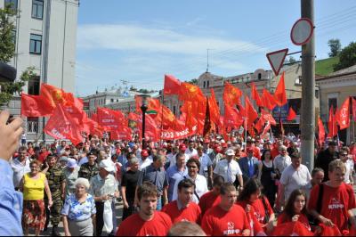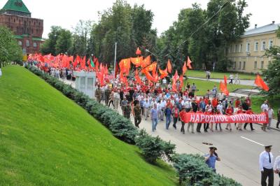 После окончания мероприятия его участники вышли на улицу, построились в колонны и пошли в сторону Нижегородского Кремля на площадь Маркова. Напомним, что накануне местные власти препятствовали проведению Народного Вече, запретив проведение мероприятия возле памятника Минину и Пожарскому (точная копия памятника, который установлен на Красной площади в Москве). Никак не удавалось согласовать с властями и маршрут движения, власть предложила окольный маршрут, минуя Кремль. Но накануне на пресс-конференции Г.А. Зюганов заявил, что коммунисты готовы проявить в этом вопросе твердость и преодолеть все препоны властей. При этом Геннадий Андреевич дал гарантию, что мероприятие пройдет организованно. И власть дрогнула…