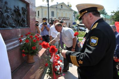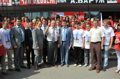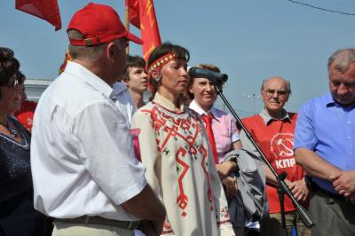 Путь пролегал возле памятника Минину и Пожарскому – точной копии памятника, который установлен в Москве. Здесь сделали остановку, возложили цветы к подножию памятника великим подвижникам. Г.А. Зюганов предложил дать на этом месте клятву быть верными правде, добру, справедливости и народовластию.
