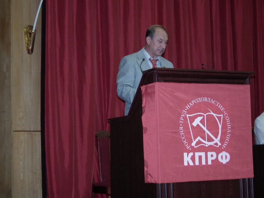 Уважаемые товарищи! Наша конференция проходит в период 20-летия переломного в истории периода провозглашения независимости России, контрреволюционного переворота августа-декабря 1991 года, когда был разрушен Совесткий Союз. Это была величайшая трагедия в истории человечества.