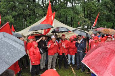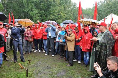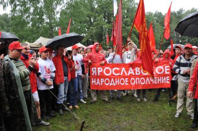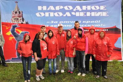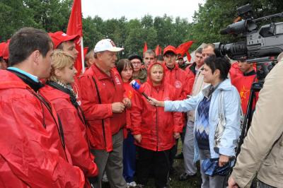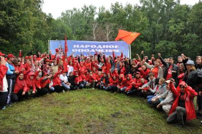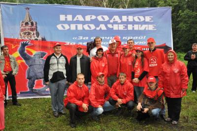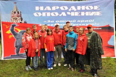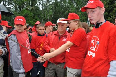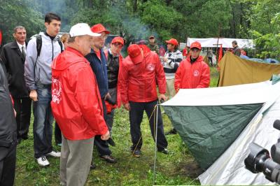 Следующий пункт повестки дня визита Г.А. Зюганова - участие в слете молодежного актива движения «Народное ополчение» и комсомольцев Центрального федерального округа. Несмотря на проливной дождь, ребята очень тепло приветствовали Геннадия Андреевича, показали ему свой лагерь возле поселка Гать. Встречу открыл первый секретарь ЦК ЛКСМ, секретарь ЦК КПРФ Ю.В. Афонин. Он рассказал, что на слете присутствуют представители из 18 регионов Центрального округа и других федеральных округов.