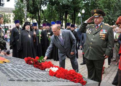 Утром у стелы в честь 400-летия основания Орла, воздвигнутой у слияния рек Ока и Орлик в 1966 году, состоялся многолюдный митинг. Он был посвящен 68-й годовщине освобождения города от немецко-фашистских захватчиков. В торжественном мероприятии принял участие лидер КПРФ и «Народного ополчения» Г.А. Зюганов.