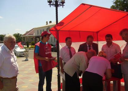 Мобильные группы коммунистов Краснодара и Гулькевичского района распространили среди жителей райцентра более 3 тыс. экз. спецвыпуска газеты «Правда», буклетов с антикризисной программой КПРФ, другими информационными материалами партии. Развернутая у ДК палатка «Народного референдума» сразу привлекла внимание жителей. Более ста избирателей поставили свои подписи в списках Народного референдума и опустили бюллетени в переносную урну.