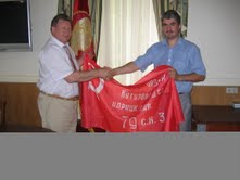 Заместитель Председателя ЦК КПРФ В.И. Кашин вручил копию Знамени Победы экспедиции коммунистов, отправляющейся 12 августа на Северные Курилы.