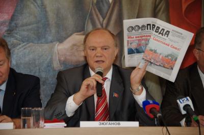 Затем состоялась пресс-конференция Г.А. Зюганова для омских журналистов. Обращаясь к участникам встречи, лидер КПРФ прежде всего продемонстрировал новый спецвыпуск «Правды», издающийся пятимиллионным тиражом. Он обратил внимание представителей СМИ на опубликованный там материал о встрече в Донецке, в которой приняли участие представители компартий из всех республик бывшего СССР.