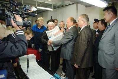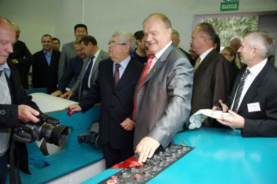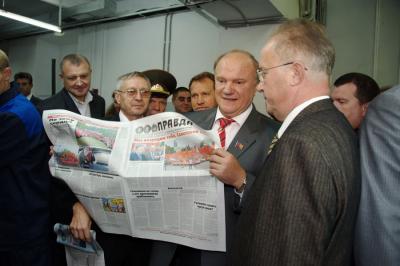 После этого состоялось открытие новой типографии Омского областного комитета. Это полиграфическое производство создано при активной поддержке Г.А. Зюганова. Оно призвано обеспечивать печатной продукцией КПРФ не только Омскую область, но и всю Сибирь и Дальний Восток. Как рассказал первый секретарь Омского обкома КПРФ А.А. Кравец, мощность типографии составляет 35 тысяч экземпляров в час. Первой продукцией нового производства стал спецвыпуск газеты «Правда», посвященный 20-летию разрушения СССР.