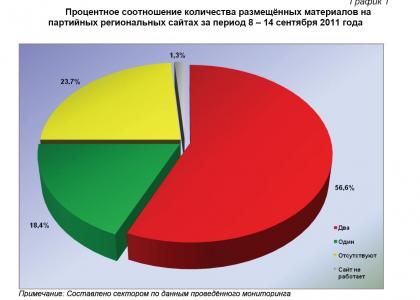 Процентное соотношение количества размещённых материалов на партийных региональных сайтах за период 8 – 14 сентября 2011 года