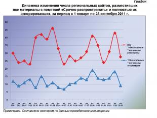 Динамика изменения числа региональных сайтов, разместивших все материалы с пометкой «Срочно распространить» и полностью их игнорировавших, за период с 1 января по 28 сентября 2011 г.