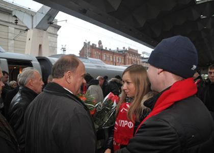 На перроне Московского вокзала Председателя ЦК КПРФ встретили ленинградские коммунисты и активисты Ленинского комсомола.