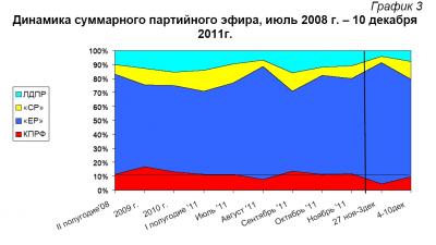 Динамика суммарного партийного эфира, июль 2008 г. – 10 декабря 2011г.
