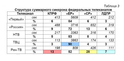 Суммарный синхрон федеральные телеканалы распределяли следующим образом (Таблица 3):