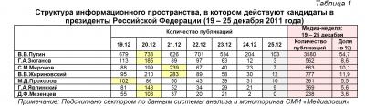 Структура информационного пространства, в котором действуют кандидаты в президенты Российской Федерации (19 – 25 декабря 2011 года)