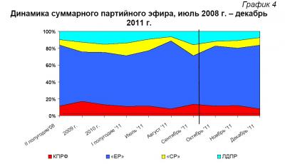В течение июля 2008 г. – декабря 2011 г. структура партийного телеэфира менялась следующим образом (График 4):