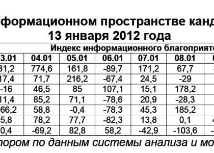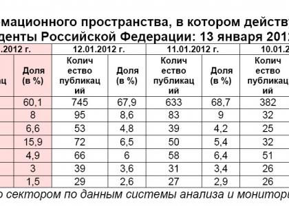 Характер освещения в информационном пространстве кандидатов в президенты РФ: 13 января 2012 года