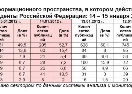Структура информационного пространства, в котором действуют кандидаты в президенты Российской Федерации: 14 – 15 января 2012 года