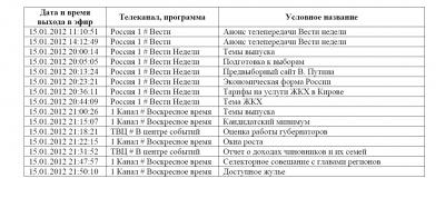 15 января на пяти федеральных телеканалах четырём парламентским партиям было посвящено 30 минут 59 секунд новостного лидерского эфира (Таблица 1).