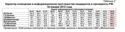 Характер освещения в информационном пространстве кандидатов в президенты РФ: 16 января 2012 года