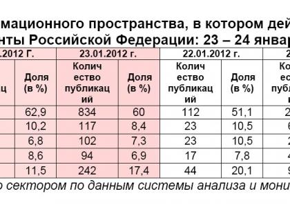 Структура информационного пространства, в котором действуют кандидаты в президенты Российской Федерации: 23 – 24 января 2012 года