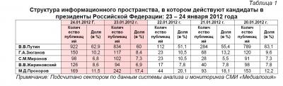 Структура информационного пространства, в котором действуют кандидаты в президенты Российской Федерации: 23 – 24 января 2012 года