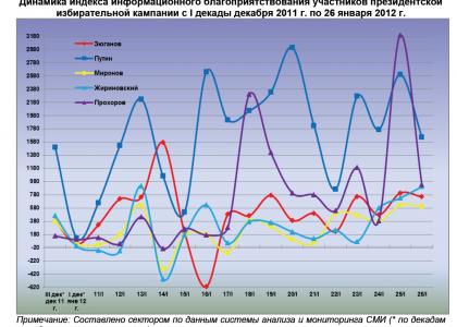 Динамика индекса информационного благоприятствования участников президентской избирательной кампании с I декады декабря 2011 г. по 26 января 2012 г.