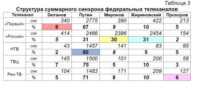 Суммарный синхрон федеральные телеканалы распределяли следующим образом (Таблица 3):