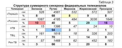 Суммарный синхрон федеральные телеканалы распределяли следующим образом (Таблица 3):