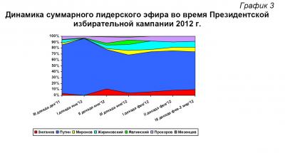 В течение Президентской избирательной кампании 2012 г. структура лидерского телеэфира менялась следующим образом (График 3):