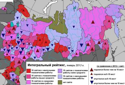 Напротив, резко опустились в рейтинге следующие сайты: Владимирский, Курганский, Иркутский, Орловский, Ивановский, и Мордовский – более чем на 25 позиций.