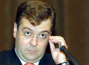 Д.А.Медведев, лидер партии "Единая Россия", прославившийся пустыми обещаниями и неумными реформами «полиции», «часовых поясов» и пр.