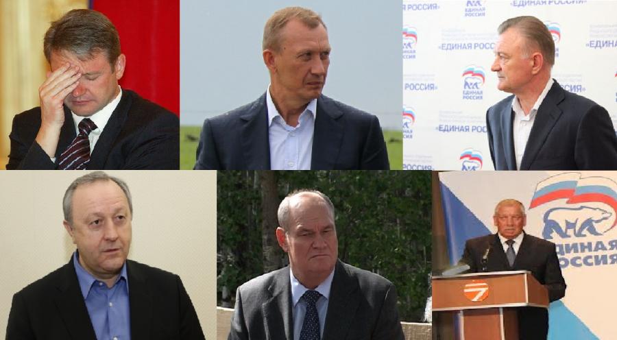 А.Н.Ткачев (Краснодарский край), Н.В.Денин (Брянская обл.), О.И.Ковалев (Рязанская обл.), В.В.Радаев (Саратовская обл.), В.К.Бочкарев (Пензенская обл.), С.Г.Митин (Новгородская обл.), - губернаторы, организовавшие самые «грязные» выборы, превратившие свои регионы в «зону сплошных фальсификаций»