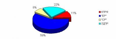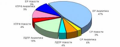 Представители «Единой России» получили в аналитических передачах 42 часа 40 минут прямой речи, что составило 59%. На долю либерал-демократов пришлось 22% эфирного времени, «эсерам» было предоставлено 8% прямой речи.