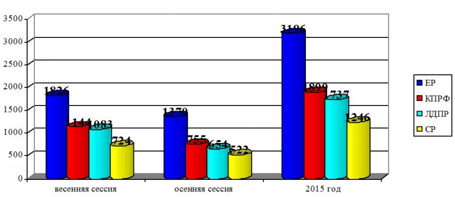 большинство депутатских мандатов – 236 из 450. Всего за 2015 год в думских