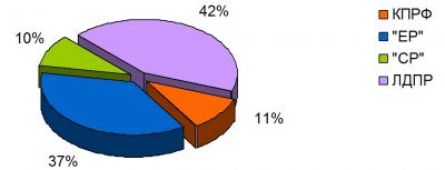 предоставлено 37% суммарного времени, либерал-демократам – 42%, справороссам 10%.