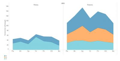 Пик публикаций в январе 2016 г. приходился на середину конец рабочей недели.
