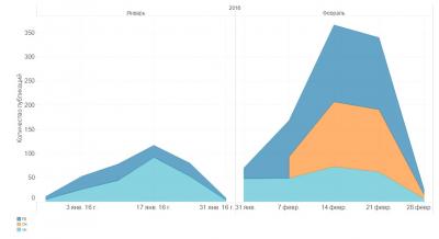 Объемы публикаций в феврале значительно возросли. Трансляция публикаций с