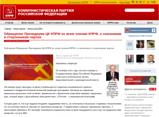 10 марта на сайте КПРФ.РУ были опубликованы три материала с пометкой «Срочно распространить»: обращение Президиума ЦК, а также резолюция и обращение Всероссийского совета трудовых коллективов. Согласно решению Президиума ЦК КПРФ, материалы с данной пометкой должны быть размещены на сайтах региональных отделений в течение двух суток.