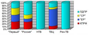 тогда как у КПРФ - 28%). «Россия» выделил «ЕР» всего 12% эфира. НТВ и Рен-ТВ