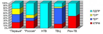 тогда как у КПРФ - 28%). «Россия» выделил «ЕР» всего 12% эфира. НТВ и Рен-ТВ