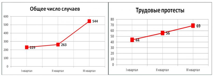 Всего за III квартал 2016 года зафиксировано 544 конфликтных случая, связанных с трудовыми отношениями (из них