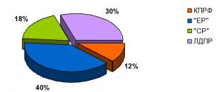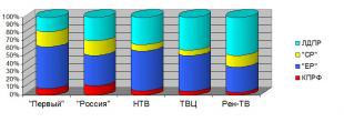 предоставлено 40% суммарного времени, либерал-демократам – 30%, справороссам – 18%.