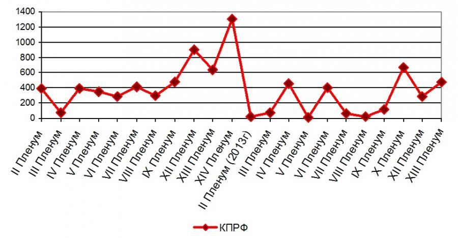 КПРФ в разное время. Общий объём освещения Пленумов Компартии изменялся