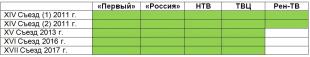 федеральными телеканалами можно представить в виде таблицы, где зеленым цветом