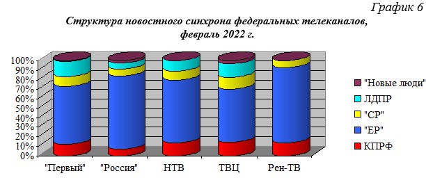 Хронометраж партийного телеэфира («Первый», «Россия», НТВ, ТВЦ и Рен-ТВ) Февраль 2022 года