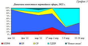 В течение 2022 г. структура новостного партийного телеэфира менялась следующим образом (Гр.3):